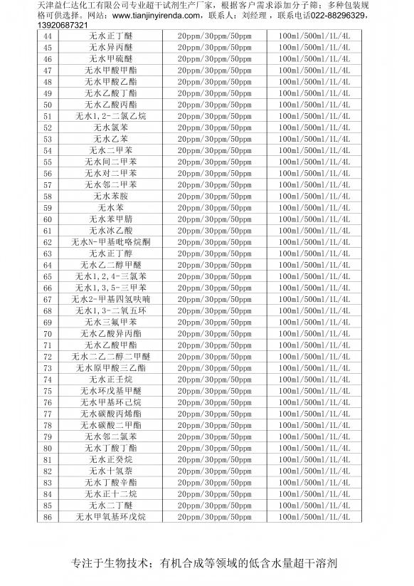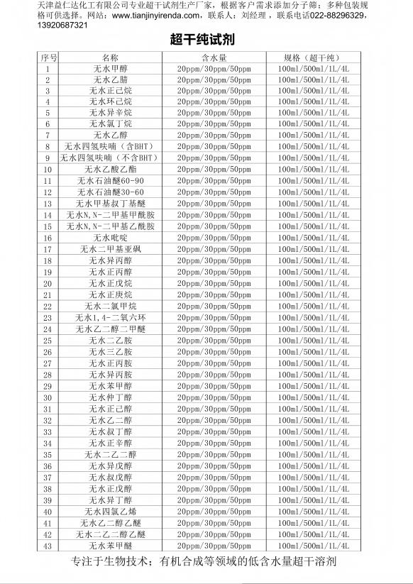 无水超干溶剂目录
