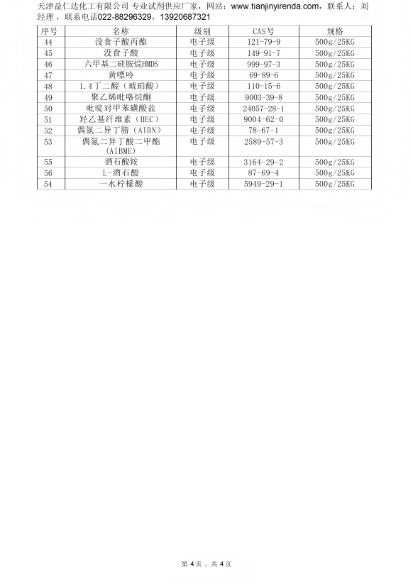 电子级试剂目录